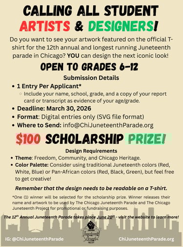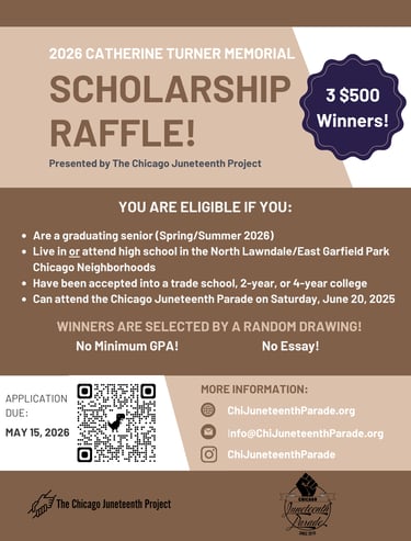 The Chicago Juneteenth Project is a 501(c)(3) organization created to not only co-organize the Juneteenth parade, but to extend the spirit of the event beyond just a single day of community engagement. The mission of The Chicago Juneteenth Project is to deliver programs and resources throughout the year that support technology enablement, educational advancement, life skills, and wellness to residents of Chicago's West Side, with emphasis on the North Lawndale and East Garfield Park neighborhoods.